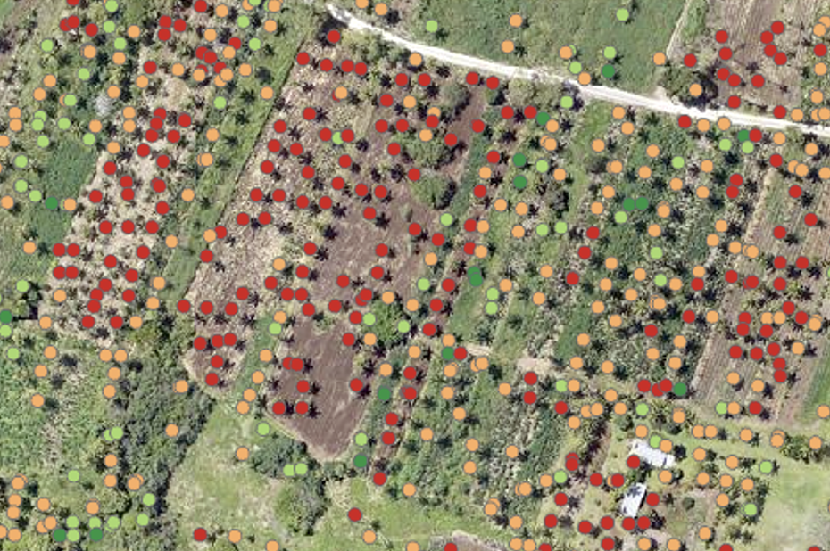 Individual tree health scoring for orchards, plantations, and agroforestry. Per-tree canopy intelligence — the resolution field-level monitoring simply can’t match.